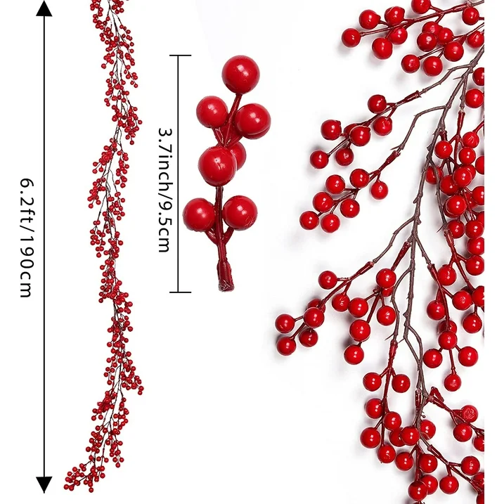 Red Berry Christmas Garland decor your New Year: 6.2Ft garland Loaded Full of Berries.Use this Christmas Berry Garland to decorate the fireplace mantel, front door, windowsills, fence, dining table,cabinet, shelf, staircase railing, porch lantern, and more. It is sure to fill your home with cozy winter cheer, Let your home look more Christmas day atmosphere.