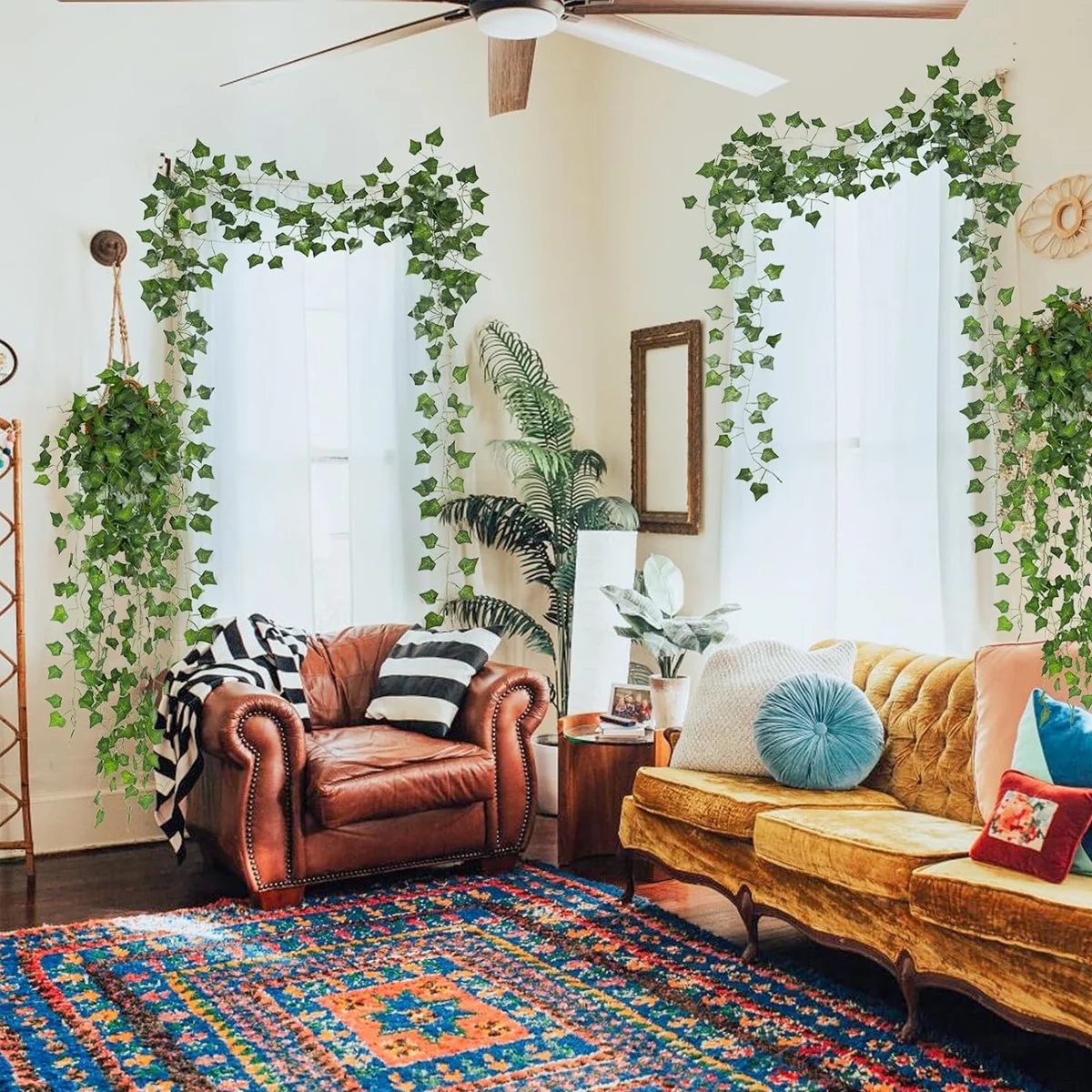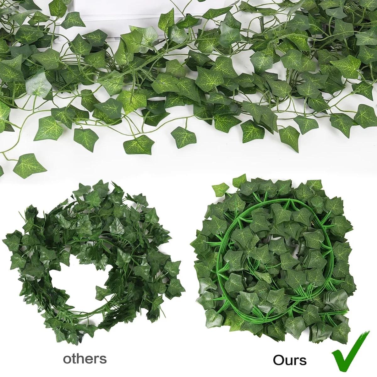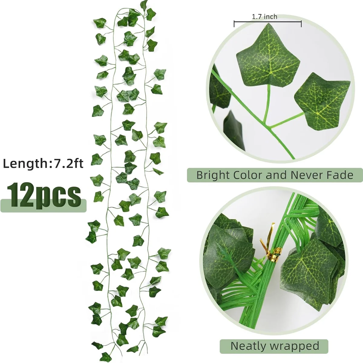 RECUTMS 86 FT Artificial Ivy:Lifelike ivy Used to decorate your room or courtyard,let you feel yourself in the nature and save your boring room space ,And green silk vine wreath will make up for the missing color. The palm shape Ivy foliage wreath does not require any special care,not require watering and deworming,you can enjoy the beauty of natural looking artificial plants .