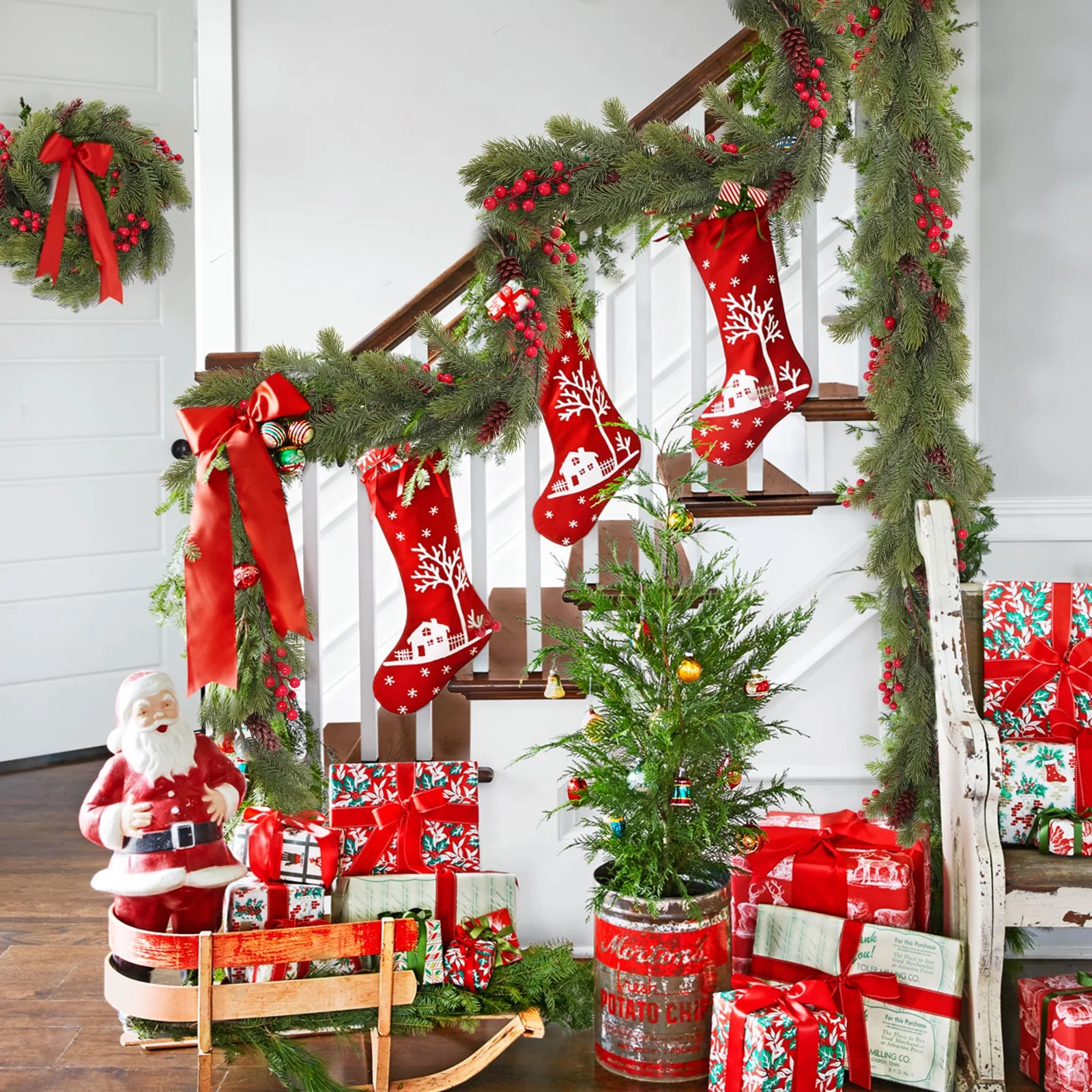 DIY Christmas Garland, Adjustable Branch—The Xmas garland is made of wire.The width varies depending on how you shape the garland. This garland is the perfect addition to your holiday decoration but will not overwhelm the scene you’re creating.you can bend and shape it to any decor you want. Link garland together to put around the front porch. Or the spruce garland can be twined around the staircase and could not be better.