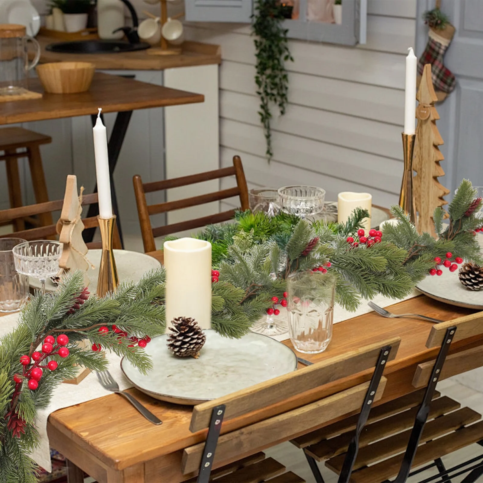 RECUTMS 5Ft Artificial Christmas Garland Pine Needle with Red Berry Greenery Garland Holiday Outdoor Winter Christmas Decor (3 Colors)