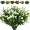 RECUTMS 8PC Artificial Outdoor Flowers Spring Greenery Outdoor Plants Artificial UV Resistant for Porch&Garden (8 Colors)